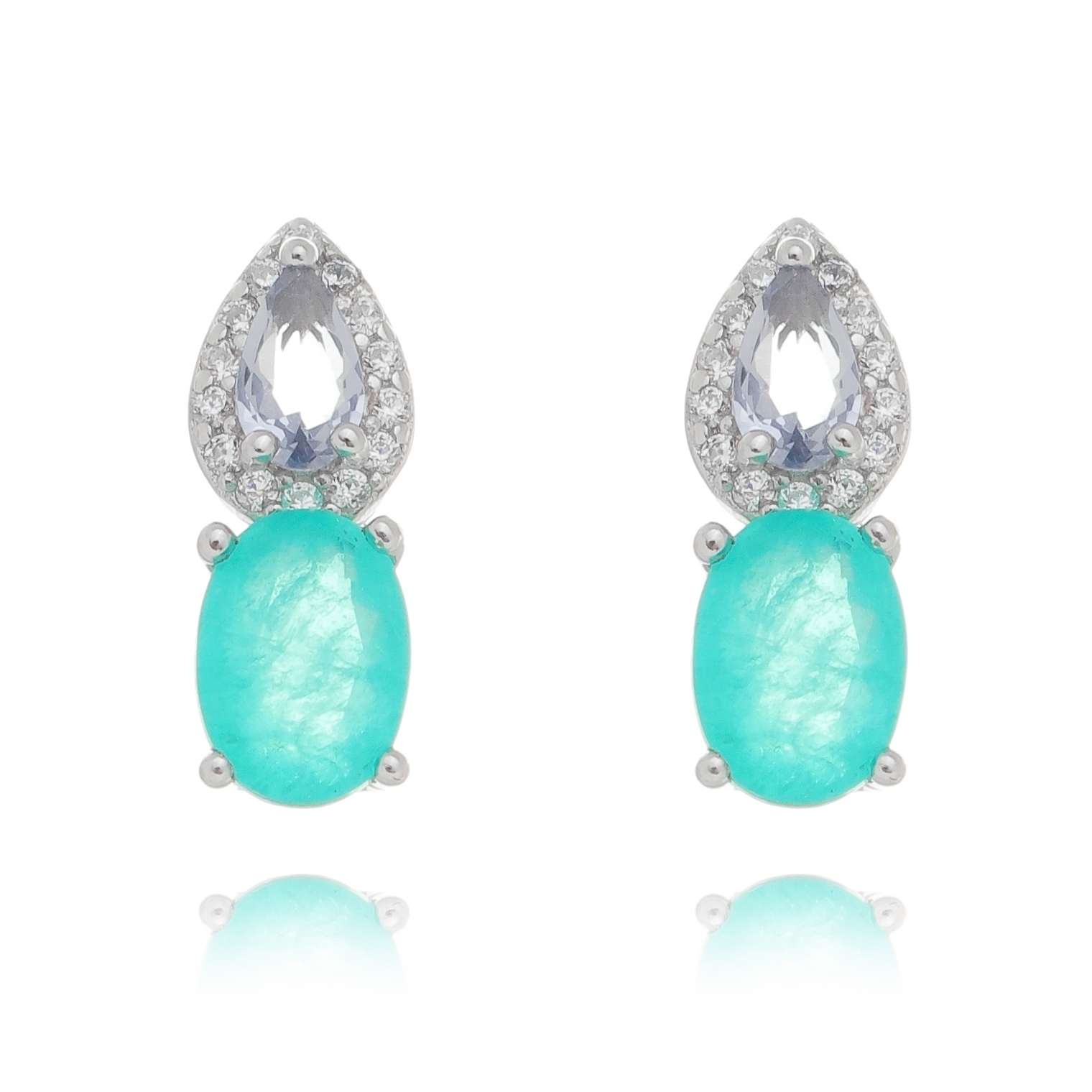 Brinco de Prata Gota Cravejado e Oval Colombiana e Tanzanita