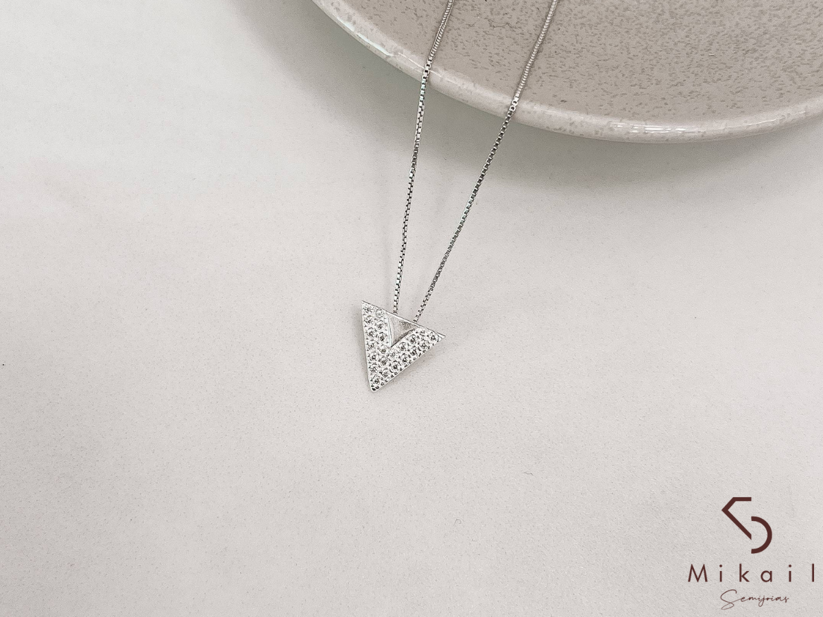 Adicione um toque sofisticado ao seu visual com o Colar de Prata 925 Triângulo Liso e Cravejado! ✨