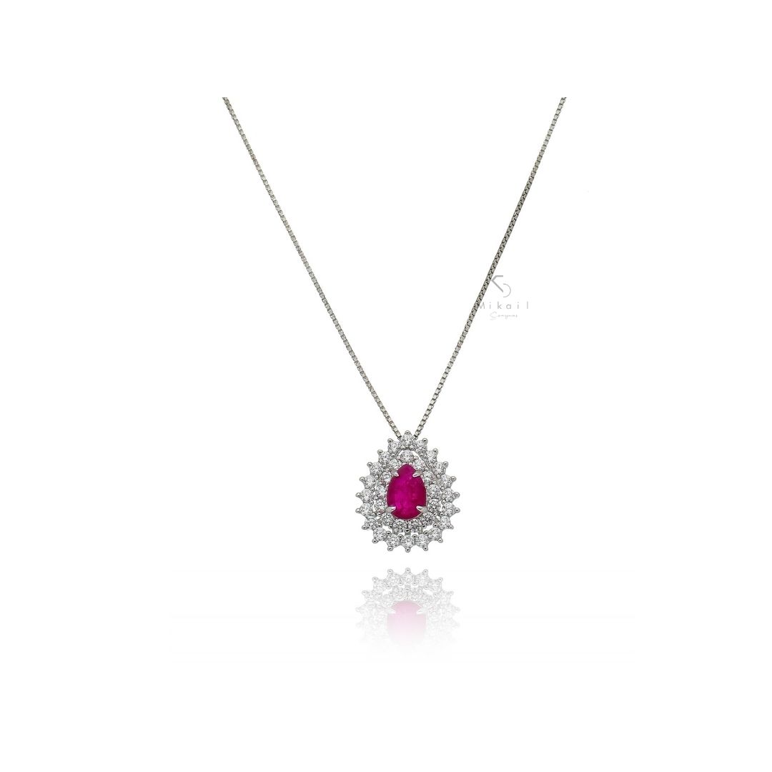 Colar de Prata Mini Gota Rubi Dupla Cravação